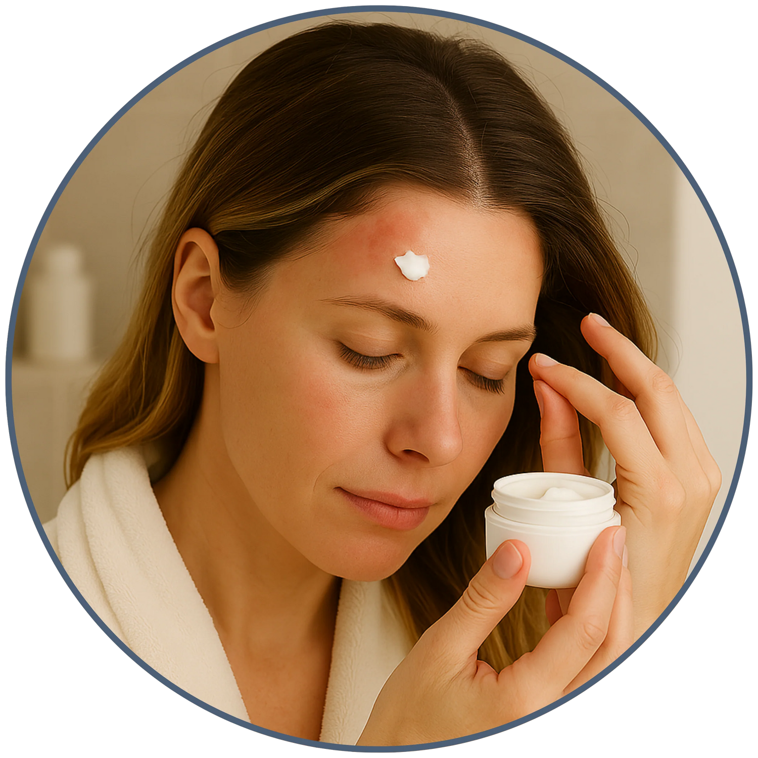 2. Apply a thin layer of Dermacure+ cream directly to the redness or irritation. The texture absorbs quickly without leaving a greasy film.